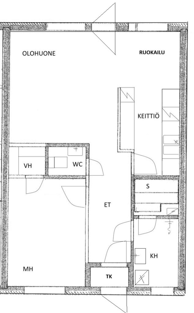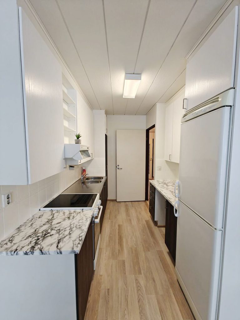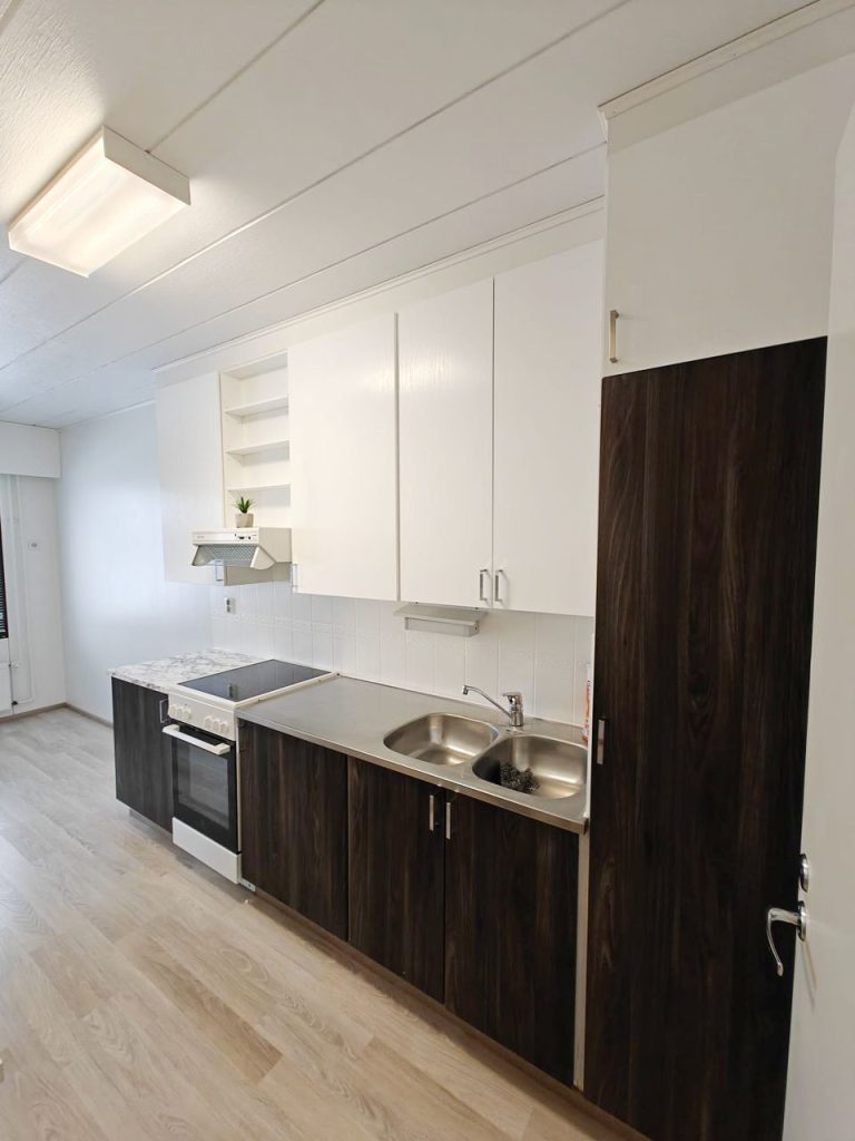 - Huoneistossa mm. laminaatit, tapetointi, keittiön tasot uusittu ja kaapiston ovet pinnoitettu 22, kiuas uusittu 25, kylpyhuonetta ja wc:tä uudistettu 26
