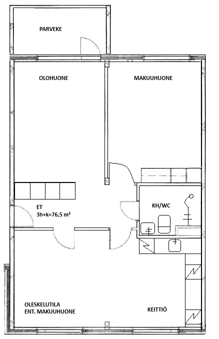 Kerrostalossa 3h+k=76,5 m²