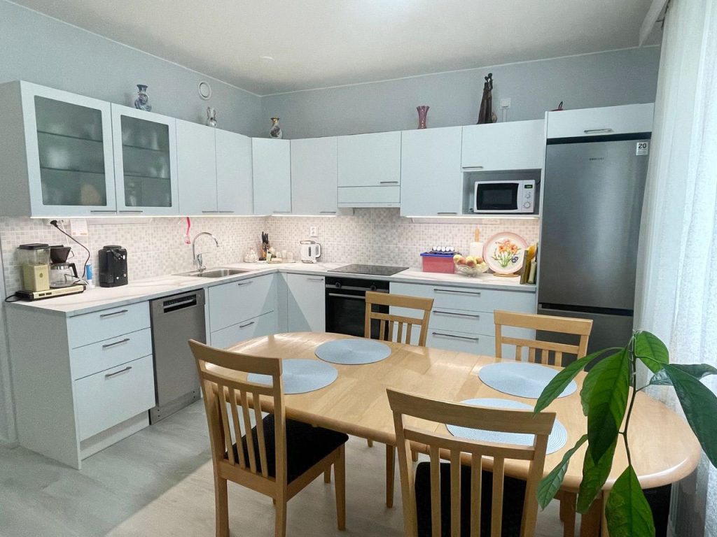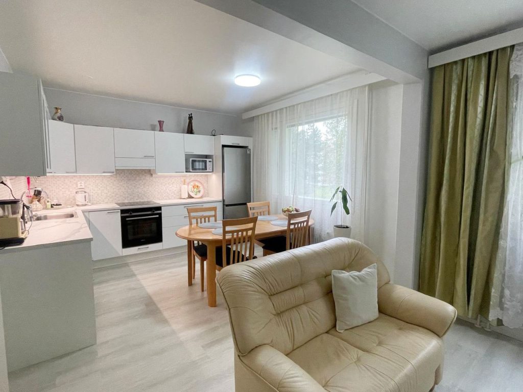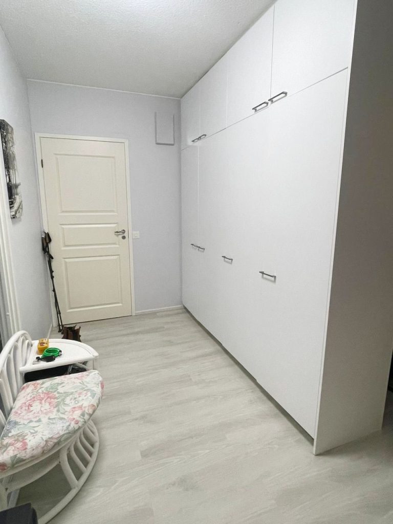 - Keittiökalusteet ja pinnat 2023, samalla keittiön ja makuuhuoneen välinen seinä poistettu, jolloin saatu iso oleskelutila keittiön yhteyteen