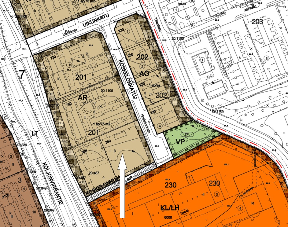 - Rakennusoikeus rivitalolle 380 k-m² ja autokatokselle/varastolle 100 k-m²