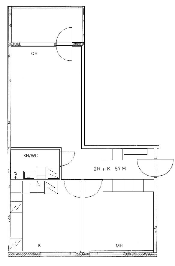 Kerrostalossa 2h+k=57 m²