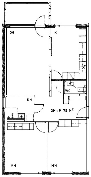 Kerrostalossa 3h+k=79 m²