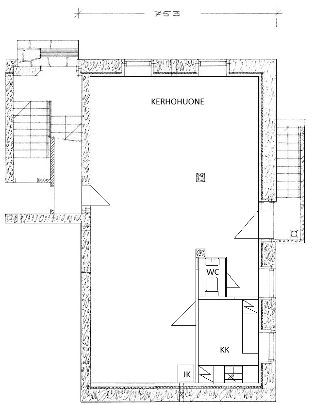 Kerho-/kokoontumistila 1h+kk+wc=75 m²