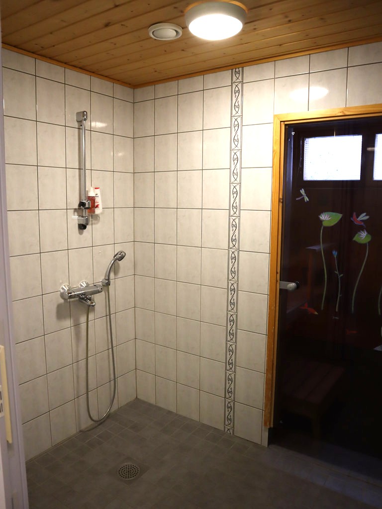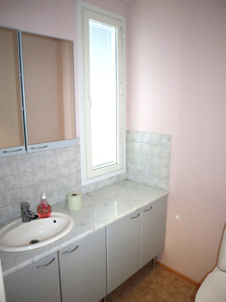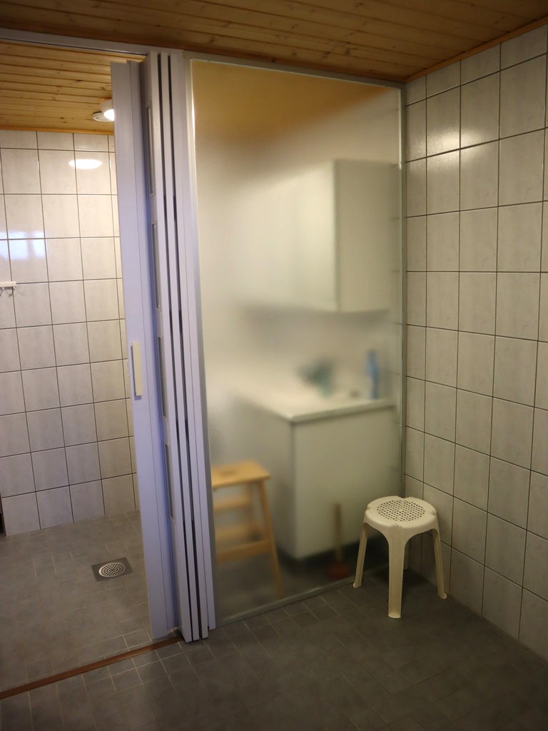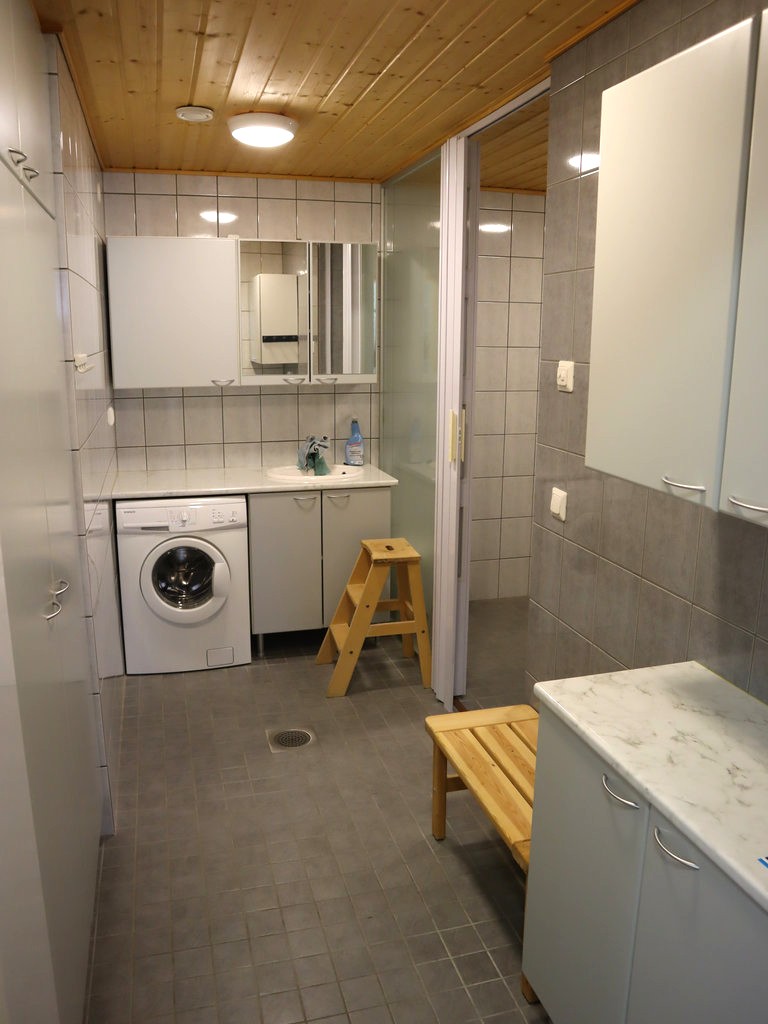 - Kylpyhuoneessa liitäntä pyykkikoneelle, kuvissa näkyvä kone voi jäädä
