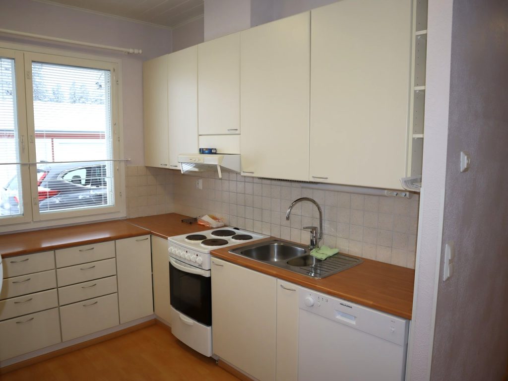 - Keittiössä valmiina astianpesukone
