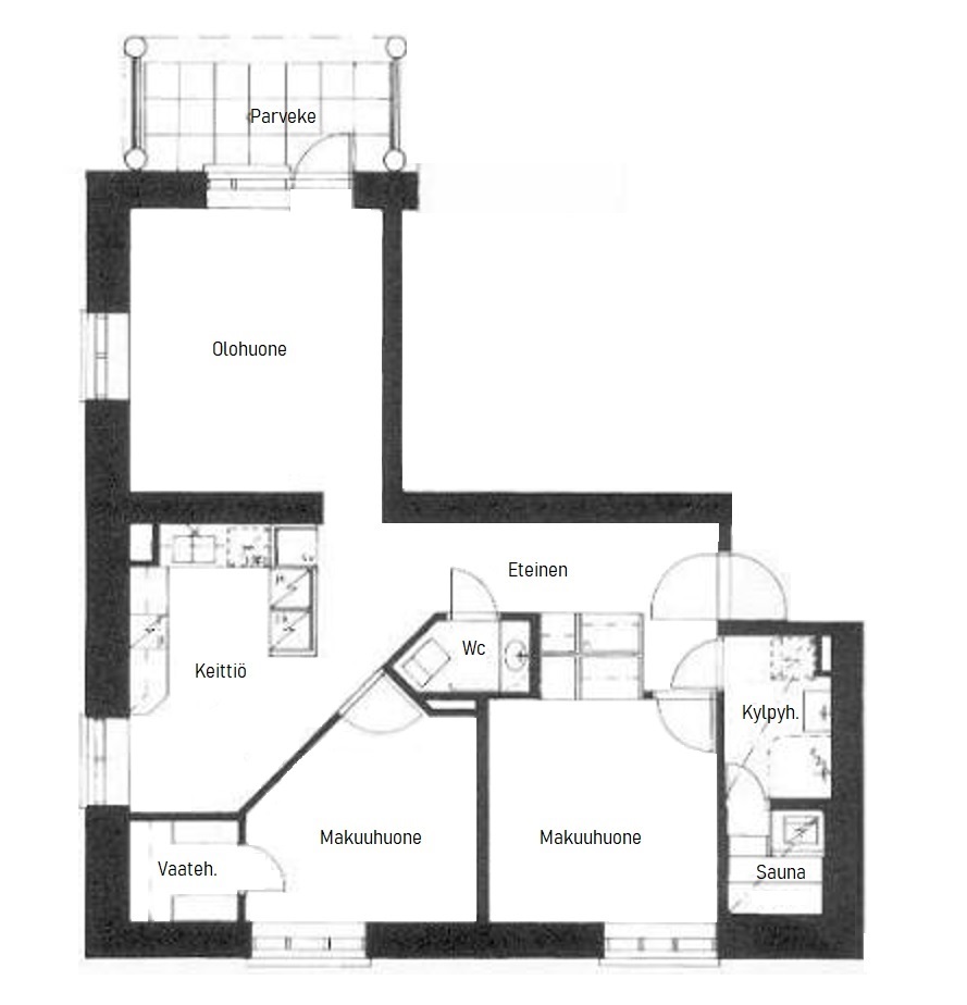 - Uusittu lukitus, kaukolämpölaitteet ja pyykkituvan pyykkikone, uusittu parvekeovet