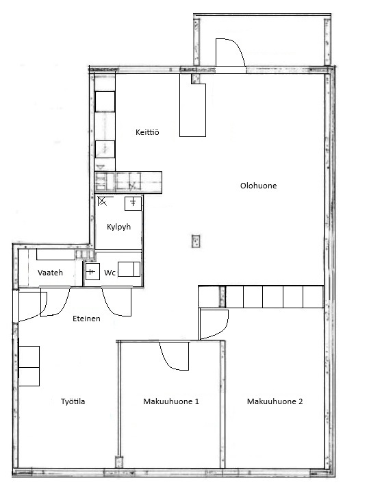 - Yhteisissä tiloissa irtainvarastot, pyykkitupa, saunatilat, ulkoiluvälinevarasto