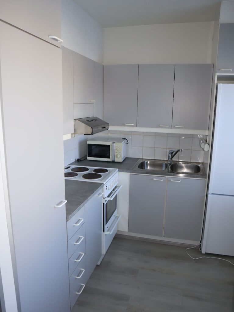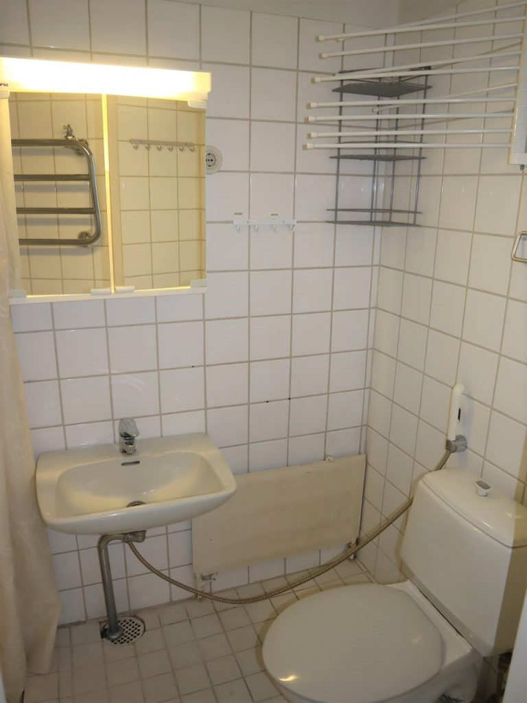 - Kylpyhuoneessa liitäntä pyykkikoneelle (päältätäytettävä kone mahtuu)