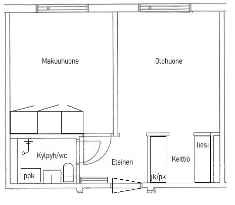 - Yhteisissä tiloissa irtainvarastot, pyykkitupa, saunatilat, ulkoiluvälinevarasto